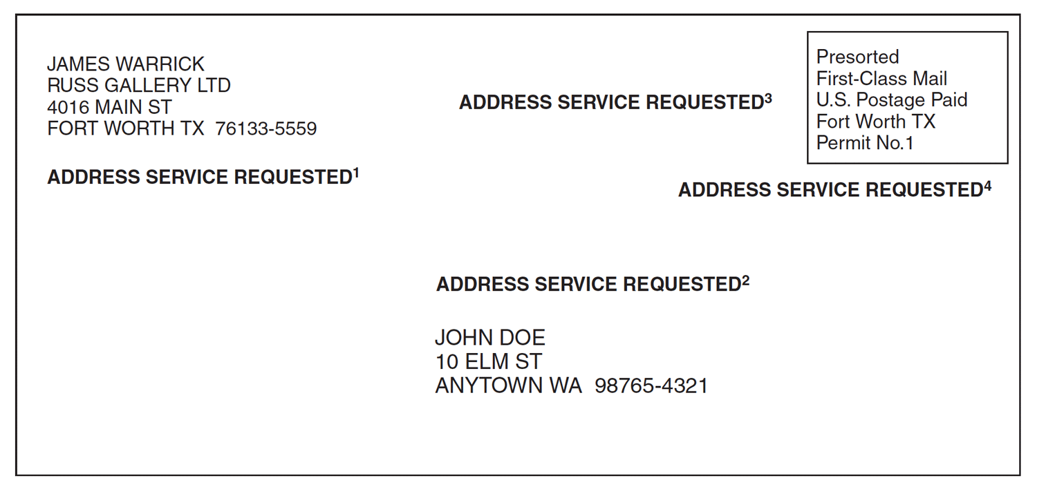 The USPS has a standard way of handling undeliverable mail. If you’d like them to handle it differently, you print an Ancillary Endorsement on the mailpiece. This document covers the location of where the endorsement should be printed, and what words to use for specific types of handling.